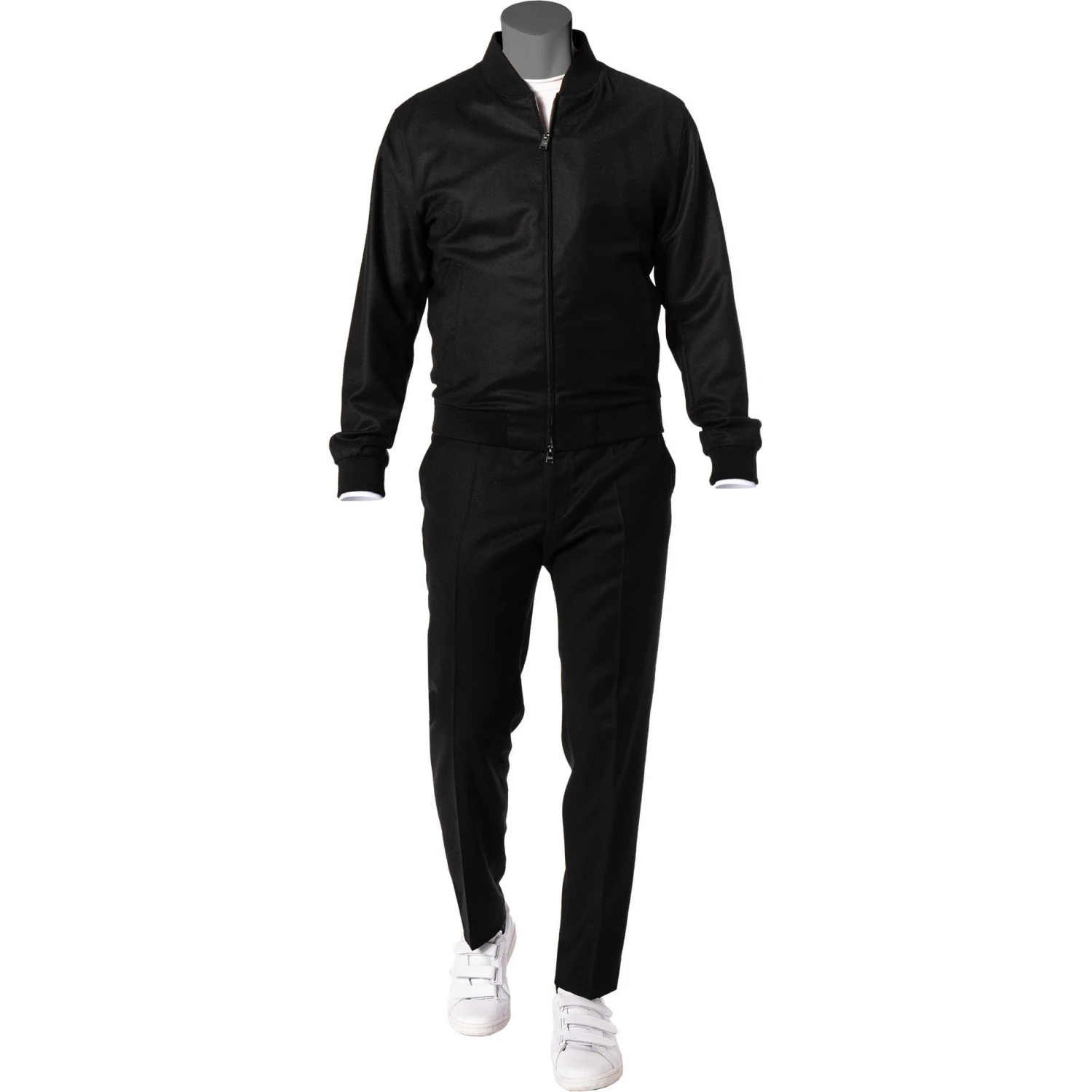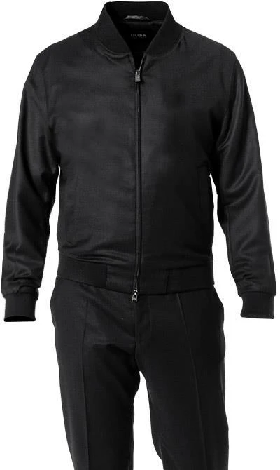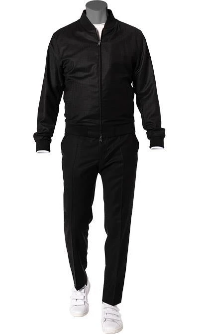 Mit dieser außergewöhnlichen Anzugvariante ziehen Sie die Blicke auf sich! Eine neue Interpretation des Anzugs ist die Kombination aus Blouson und Jogpants. Der zeitgemäße Zweiteiler ist aus Schurwolle in Flanellqualität gefertigt, die nicht nur für optimalen Tragekomfort sorgt sondern auch einen ausdrucksstarken Look inszeniert. Feine Rippenstrickdetails an Stehkragen und Bündchen und eine Jogpant als modische Alternative zur klassischen Anzughose unterstreichen die innovative Optik.