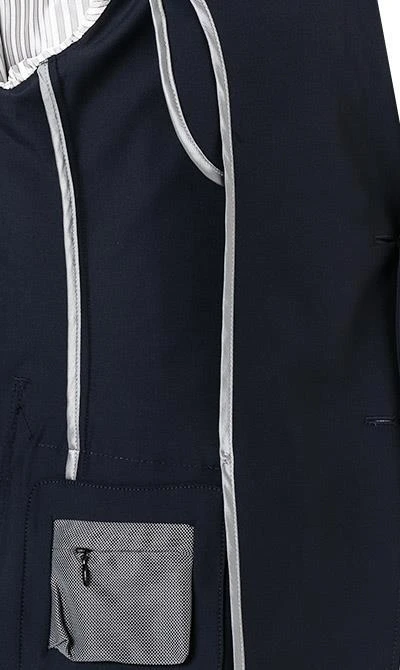 Dieser Anzug bietet dem modernen Reisenden den perfekten Look für einen aktiven Lebensstil. Durchdachte Details mit einer Sakkoverarbeitung nur mit Ärmelfutter und die spezielle Mikrofaser Qualität mit Stretchanteil sorgen für alles, was Mann für unterwegs braucht: makellosen Stil und praktische Funktionalität mit einer optimalen Bewegungsfreiheit. Eine Jogpant mit elastischem Tunnelzugbund als trendige Alternative zur klassischen Anzughose verleiht eine individuelle, zeitgemäße Note.