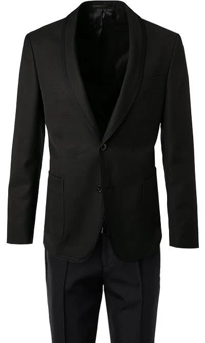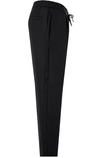 Dieser Smoking ist die perfekte Wahl für Männer die es stilvoll aber modern mögen. Die schlanke Silhouette und die dezenten Kontrastdetails definieren die Optik. Der Bund mit Tunnelzug und die seitlichen Galonstreifen sorgen dabei für einen sportiv-eleganten Look.