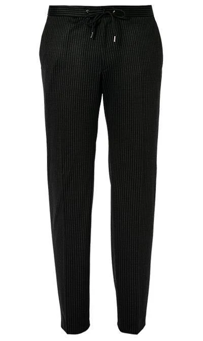 Dieser Anzug begeistert durch eine weiche, bequeme Qualität. Die schmale Form mit Tunnelzug am Hosenbund verleiht Ihrem Look einen sportiven und modischen Charakter. Das halbgefütterte Sakko unterstreicht den legeren Look.