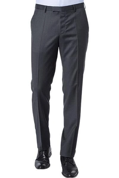 Details: Anzughose, Gerade geschnitten, Bügelfalten, Normale Bundhöhe