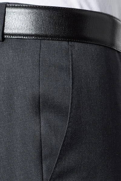 Details: Anzughose, Sehr schmal geschnitten, Bügelfalten, Niedrige Bundhöhe, Aufschlag
