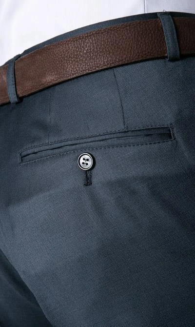 Details zur Hose: Verlängerter Bund, Schmal geschnitten, Paspeltasche/n, Seitliche Eingrifftaschen, Bügelfalte