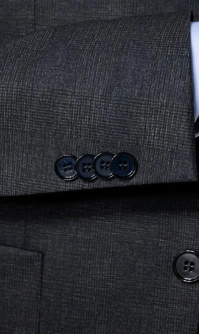 Details zum Sakko: Reverskragen, Zwei-Knopf-Sakko, Einreiher, Aufgesetzte Tasche/n, Brustleistentasche, Doppelschlitze, Zierschlitz mit Kissing Buttons, Paspeltasche/n innen, Tasche/n mit Knopf und Lasche innen