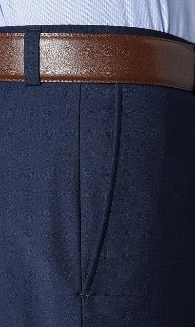 Details zur Hose: Verlängerter Bund, Schmal geschnitten, Aufgesetzte Taschen, Leistentasche/n, Bügelfalte