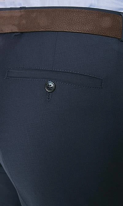 Details zur Hose: Verlängerter Bund, Schmal geschnitten, Aufgesetzte Taschen, Leistentasche/n, Bügelfalte