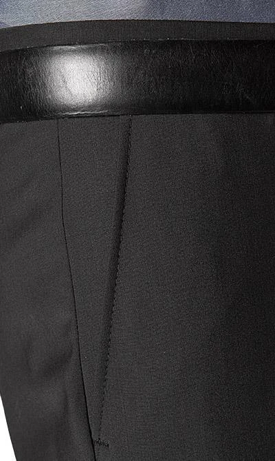 Details zur Hose: Verlängerter Bund, Schmal geschnitten, Aufgesetzte Taschen, Leistentasche/n, Bügelfalte