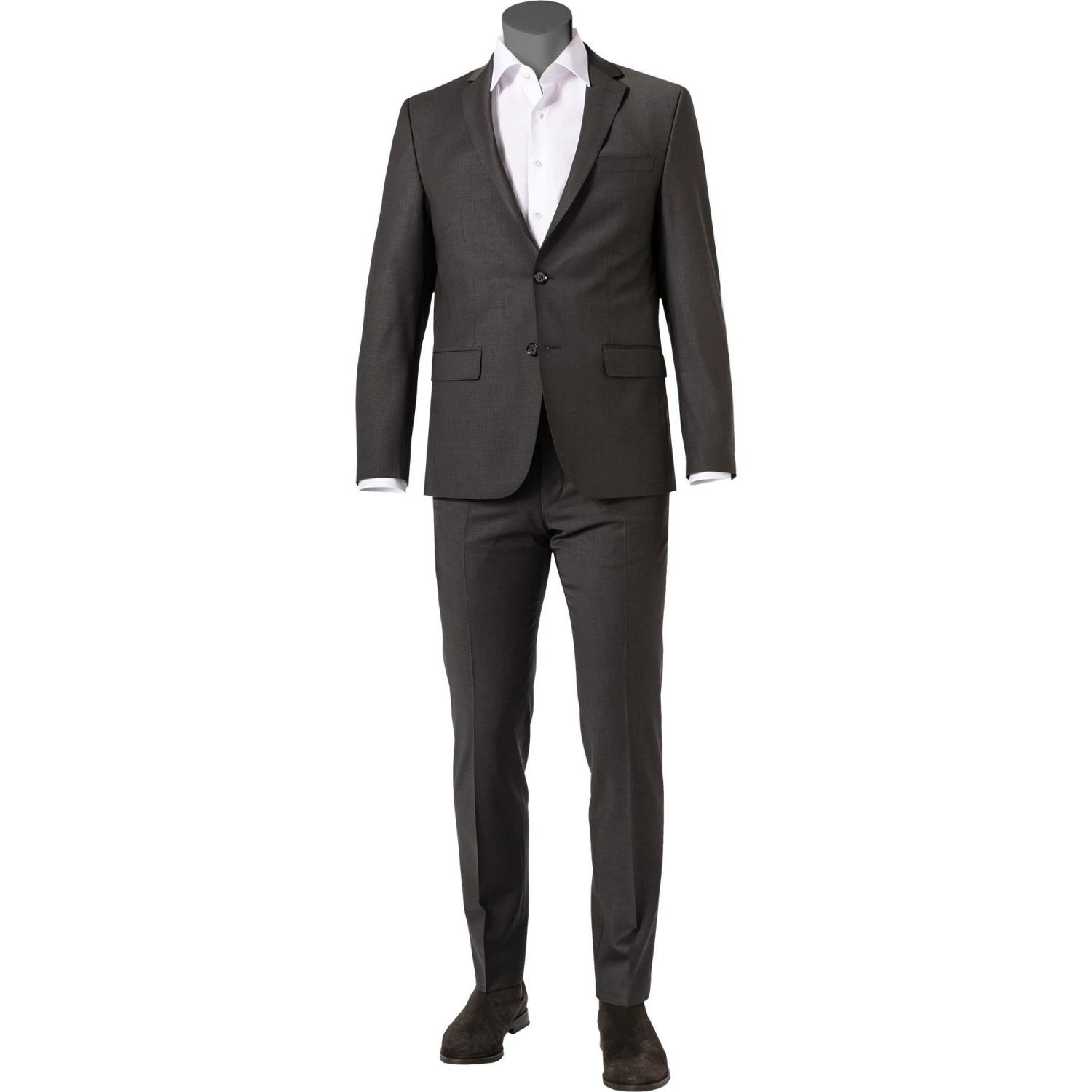 Im klassischen Design wird bei diesem Anzug eine leichte Schurwollmischung zu einem besonderen Zweiteiler verarbeitet. Die Stretch Qualität und ein Stretchfutter im Ärmel bieten bequemen Tragekomfort. Für den zeitgemäßen Look sorgt der leicht schmale Schnitt.