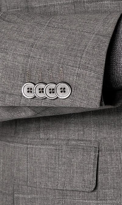 Details zum Sakko: Reverskragen, Zwei-Knopf-Sakko, Einreiher, Leistentasche/n, Paspelierte Pattentasche/n, Doppelschlitze, Zierschlitz mit Kissing Buttons, Paspeltasche/n innen