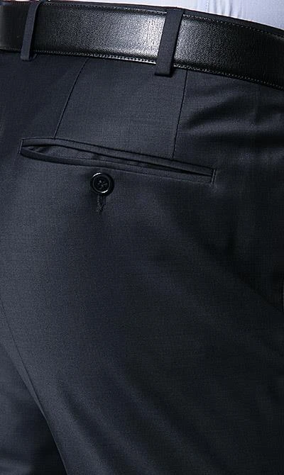 Details zur Hose: Verlängerter Bund, Schmal geschnitten, Aufgesetzte Taschen, Paspeltasche/n, Bügelfalte