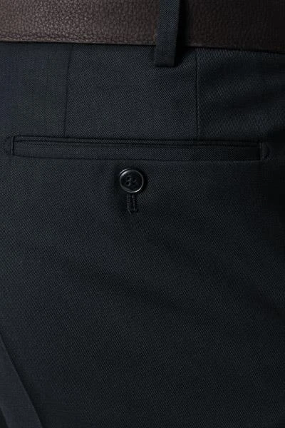 Gepflegter Look in Kombination mit hochwertigem Materialeinsatz, so präsentiert sich diese Businesshose. Der Style-Aufbau ist klassisch gehalten mit viel Liebe zum Detail, Gürtelschlaufen und Tascheneingriffen ist eine feine Handstich-Ziernaht gesetzt. Dadurch erhält sie zusätzlich einen wertigen, maßgefertigten Charakter.