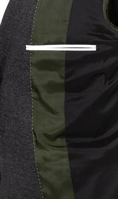 Details zum Sakko: Reverskragen, Zwei-Knopf-Sakko, Einreiher, Brustleistentasche, Paspelierte Pattentasche/n, Doppelschlitze, Zierschlitz mit Kissing Buttons, Paspeltasche/n innen beidseitig