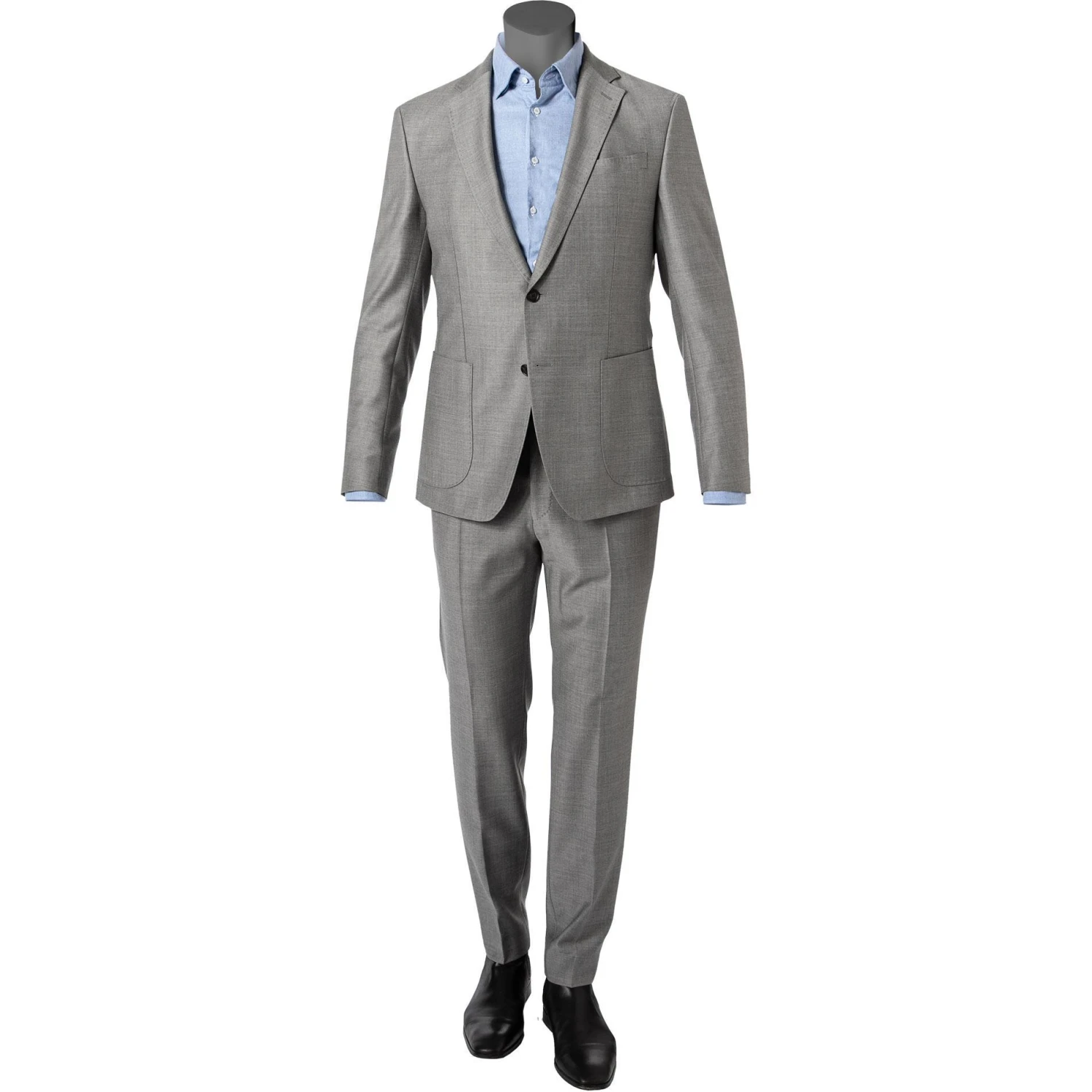 Klasse aussehen und sich dabei herrlich wohlfühlen. Dieser Anzug begeistert durch den modischen Look mit trendigen Jogpants. Die schmale Form und die fein strukturierte Schurwollqualität verleihen einen geschmackvollen Charakter. Ziernähte in Handstich Optik unterstreichen den individuellen Zweiteiler.