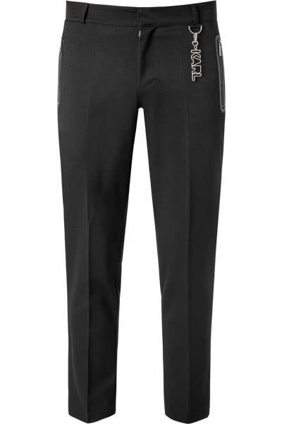 Ein modernes Design und ein klassischer Schnitt machen diese hochwertige Hose aus. Sie lässt sich vielseitig kombinieren und garantiert durch die pflegeleichte und kompakte Twill Qualität besten Tragekomfort. Zwei mit Lederstreifen verzierte Reißverschlusstaschen mit Logo-Zipper, sowie ein abnehmbarer KARL-Anhänger komplettieren das exklusive Gesamtbild.