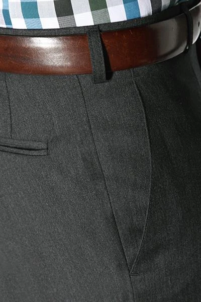 - Verlängerter Bund mit Haken, Knopf-Gegenknopf, Reißverschluss.