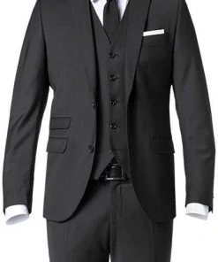 CG Anzug 30-031S0/423622+433063+441013/90 Anzug mit Weste, Slim Fit, Schurwoll-Stretch, Schwarz