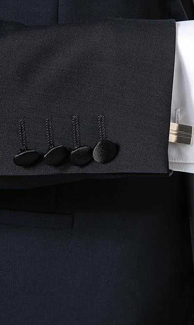 Dieser stilvolle Smoking präsentiert sich in hochwertiger Schurwolle. Die leicht schmale und taillierte Passform unterstreicht die modische Silhouette. Ein exklusiver und außergewöhnlich eleaganter Anzug für Abendveranstaltungen mit Dresscode.