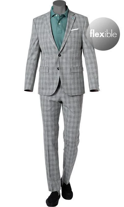 Die ideale Kombination für einen dynamischen Auftritt: Der schmal geschnittene Anzug zeigt sich in karierter Optik. Für außergewöhnlichen Tragekomfort sorgt die innovative FUTUREFLEX-Qualität.