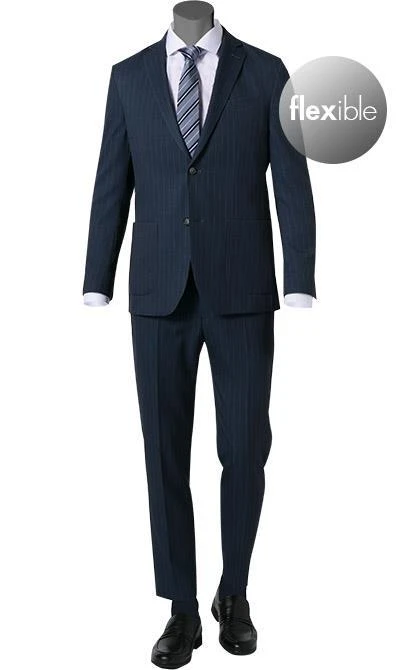 Die ideale Kombination für einen dynamischen Auftritt: Der schmal geschnittene Anzug zeigt sich mit klassischen Nadelstreifen. Für außergewöhnlichen Tragekomfort sorgt die innovative FUTUREFLEX-Qualität, ein Material mit Power-Stretch, knitterfrei und wasserabweisend. Das halbgefütterte Sakko bringt zusätzliche Bewegungsfreiheit und unterstreicht den modernen Look.