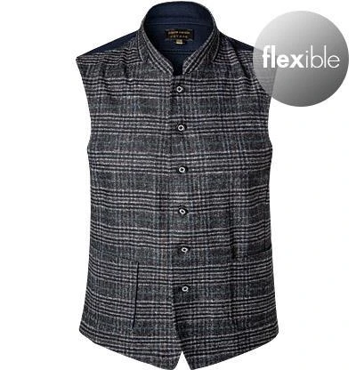 Als Alternative zu Sakko oder Cardigan sorgt diese Weste für eine gepflegte Optik. Der Stehkragen und das Karomuster verleihen Stil, für bequemen, leichten Komfort sorgen der Rücken aus Jersey und die ungefütterte Verarbeitung. Der perfekte Reisebegleiter.