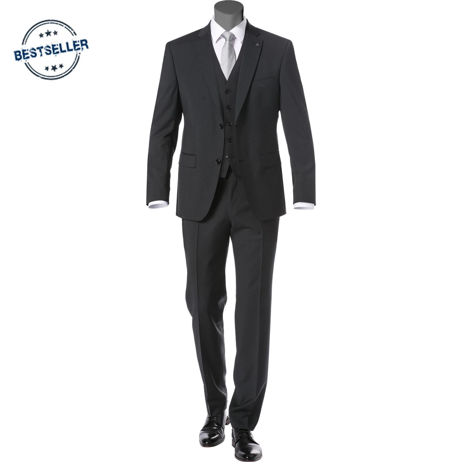Anzug mit Weste aus der Serie Freestyle 3000 von ROY ROBSON Beste Schurwolle, ein cleanes Design und ein antaillierter Schnitt sind die Zutaten für diesen erstklassigen Anzug, der mit Geradlinigkeit und Eleganz besticht. Ein chicer Allrounder für die smarte Business-Garderobe sowie als gehobenes Outfit für offizielle Anlässe. Ein moderner und inspirierender Anzug, der Sie stilvoll in Szene setzen wird.