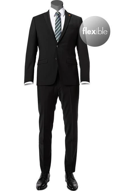 Dieser innovative Anzug aus feinster Wollmischung mit einer sehr schmalen Passform sorgt mit einem Stretchanteil für optimalen Tragekomfort. Extra schlank und dennoch bequem, mit der smart Flex Ausstattung als Stretchfutter kann der Zweiteiler kompromisslos figurnah und trotzdem angenehm getragen werden. Für das perfekte Business Outfit oder kombiniert mit T-Shirt oder Stehkragenhemd und Sneakern für einen lässigen Auftritt bei privaten Anlässen.