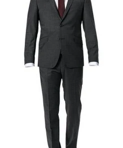 Details: Anzughose, Schmal geschnitten, Bügelfalten