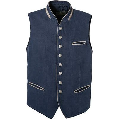 Mit einer kernigen Struktur und kontrastfarbigen Details in Velours Optik ist diese Trachtenweste ein modisch stilvoller Begleiter, der durch die markanten Metallknöpfe authentisch komplettiert wird. Einen besonderen Effekt im angesagten Vintage Look erhält das Modell durch eine spezielle Färbung, die für Unikatscharakter sorgt.