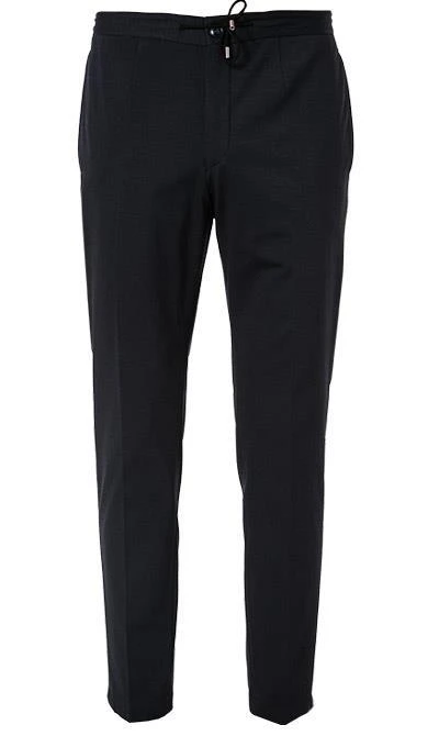 Details zur Hose: Schmal geschnitten, Leistentasche/n hinten, Seitliche Eingrifftaschen, Bügelfalte , Tunnelzug
