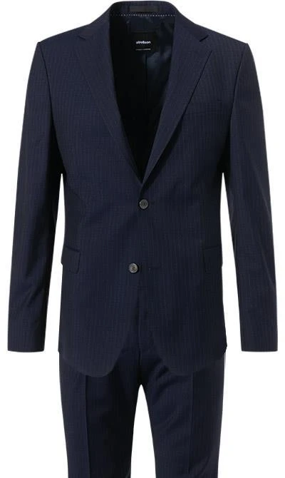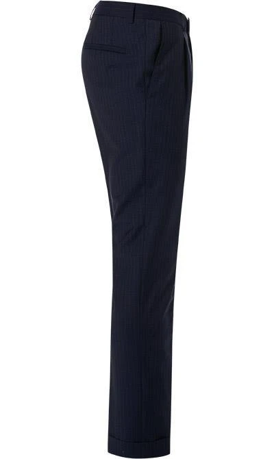 Ein Kontraststreifen am Futtereinsatz und hochwertige Ziernähte in Handstich-Optik sowie eine feine Schurwoll-Qualität machen diesen Anzug zu etwas Besonderem.