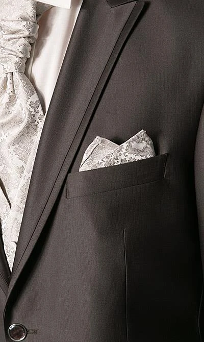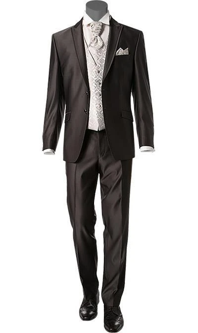 Der perfekte Begleiter zum Brautkleid in Weiß Kombinieren Sie diesen edlen Hochzeitsanzug mit einem Smokinghemd oder einem Hemd mit Hai-Kragen in Weiß. Als Schuhe empfehlen wir Ihnen Glattlederschuhe mit Ledersohle (tanzfähig) in Schwarz, für die Kniestrümpfe (bei formellen Anlässen ein Muss) einen möglichst exakt auf die Schuhe abgestimmten Farbton.