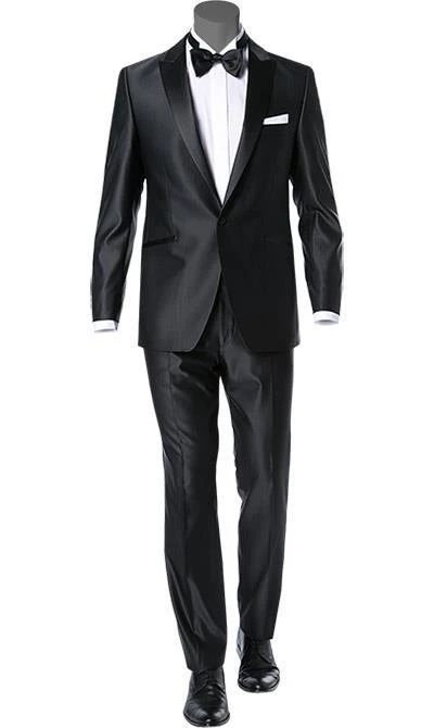 Dieser Smoking ist auf jeden Fall die richtige Wahl für offizielle Gesellschafts-Ereignisse. In sehr schmaler, modischer Passform mit Spitzfasson ist er aber nicht nur für Oper und ähnliche Veranstaltungen geeignet. Ein Smoking im schicken Look aus dezent glänzendem Woll-Mix. Modemutige Männer kombinieren das Sakko auch mal mit Jeans oder tragen Sneaker zum Smoking. Die perfekte Mischung aus Coolness und Eleganz.