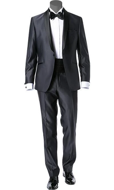 Dieser Smoking ist auf jeden Fall die richtige Wahl für offizielle Gesellschafts-Ereignisse. In sehr schmaler, modischer Passform mit Schalkragen ist er aber nicht nur für Oper und ähnliche Veranstaltungen geeignet. In Nachtblau als Alternative zu Schwarz setzen Sie mit dem neuen Color-Code ein modisches Statement. Trendsetter kombinieren das Sakko auch mal mit Jeans oder tragen Sneaker zum Smoking. Die perfekte Mischung aus Coolness und Eleganz.